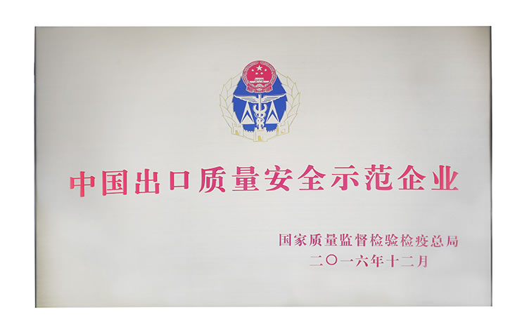 获颁“中国出口质量安全示范企业“荣誉称号